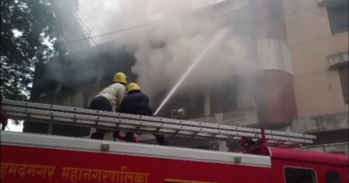 नगर : नगर शहरातील माळीवाडा बसस्थानक परिसरातील अंबर प्लाझा इमारतीला अचानक भीषण आग (Fire) लागली. घटनास्थळी अग्निशमन (fire fighting) दलाच्या दाेन गाड्या दाखल झाल्या आहे. आग विझवण्यासाठी तसेच इमारतीतील नागरिकांना बाहेर काढण्याचे काम प्रशासनाकडून युद्धपातळीवर सुरू आहे. आमदार संग्राम जगताप (Sangram Jagtap) यांनी घटनेची पाहणी करून प्रशासनाला तत्काळ सूचना केल्या आहे.