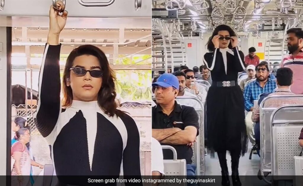“मुंबई-मुंबई लोकल ट्रेनच्या सर्वात सार्वजनिक ठिकाणी अशा प्रकारे गेलो,” शिवम भारद्वाजने इन्स्टाग्रामवर स्वतःचा एक व्हिडिओ शेअर करताना लिहिले. त्यामध्ये, तो काळ्या रंगाच्या फ्लोय स्कर्टमध्ये काळ्या बूट आणि सनग्लासेसमध्ये कॅटवॉक करताना दिसतो कारण मुंबई लोकलमध्ये बसलेले लोक त्याच्याकडे टक लावून पाहतात. त्याच्या इन्स्टा बायोनुसार, तो “शर्मा जी का लडका आहे ज्यांनी सीएपेक्षा फॅशन निवडली.”