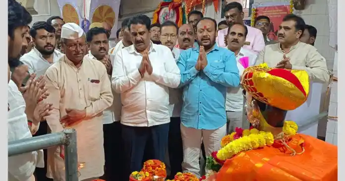 Mangal Kalash : कर्जत : २२ जानेवारीला अयोध्येत नवनिर्मित भव्य मंदिरात भगवान प्रभू श्रीरामांच्या मूर्तीची प्राणप्रतिष्ठा (Pranapratistha of Shriram’s idol) होणार आहे. त्यानिमित्ताने घरोघरी निमंत्रण देण्यासाठी अयोध्या येथून आलेल्या अक्षदा व मंगल कलशांचे (Mangal Kalash) शनिवारी (ता.१६) कर्जत शहरात उत्साहात स्वागत करण्यात आले. यावेळी ग्रामदैवत संत सदगुरु गोदड महाराजांच्या (Saint Sadguru Godad Maharaj) मंदिरात आरती झाली.
