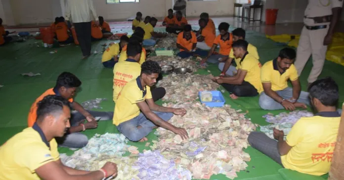 शारदीय नवरात्र उत्सव (Navratri festival) काळात राज्यभरातून आलेल्या लाखो भाविकांनी श्री क्षेत्र मोहटादेवीच्या (Mohatadevi) चरणी भरभरून दान अर्पण केले आहे. सुमारे एक कोटी ६५ लाखाचे दान देवी भक्तांकडून देवीला अर्पण झाले असून यामध्ये रोख रक्कम,सोने व चांदी यांचा समावेश आहे. मोहटादेवी गडावर देवस्थानचे दानपेटयाची मोजमाप नुकतीच अहमदनगर (Ahmednagar) येथील धर्मादाय उपआयुक्त यांचे प्रतिनिधी उमाकांत फड, देवस्थान विश्वस्त, पाथर्डी येथील सराफ मे. काशिन्नाथ वामन शेवाळे, पोलीस व देवस्थान सुरक्षा व सीसीटीव्हीचे निगराणीमध्ये नुकतेच संपन्न झाले.