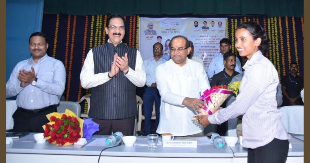 जिल्हाधिकारी सिध्दाराम सालीमठ म्हणाले, महसूल सप्ताहात युवा संवाद आयोजित करण्यात आला. जिल्ह्यात १०७ महाविद्यालयात विद्यार्थ्यांशी संवाद साधण्यात आला. जिल्ह्यातील ३८ महाविद्यालयांसोबत मतदार जागृती करण्याचे काम करण्यात येत आहे. शासनाचे विभाग आता कालानुरूप तंत्रज्ञानस्नेही होत आहेत. ऑनलाईन सेवा देण्याचे काम करत आहेत. शासनाप्रती संवेदना निर्माण करण्याचे काम विद्यार्थ्यांच्या माध्यमातून करण्यात येत आहे. विद्यार्थ्यांच्या कौशल्याचा योजनांचा प्रचार – प्रसार करण्यात येईल.