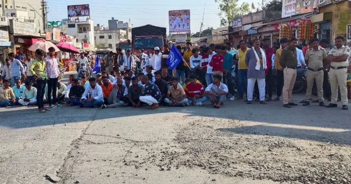 त्यामुळे प्रशासनाने सदरची लोखंडी फ्रेम आणि त्यावर लावलेला फलक तात्काळ काढावा. तसेच ते उभारण्यात असणाऱ्या सर्व व्यक्तींवर अॅट्रॉसिटीनुसार गुन्हा दाखल करावा, या मागणीसाठी रास्ता रोको आंदोलन केले. वरील आशयाचे निवेदन संस्थेचे वरिष्ठ लिपिक दत्तात्रय वाघमारे आणि डी बी गवळी यांनी पोलीस प्रशासनास दिले.