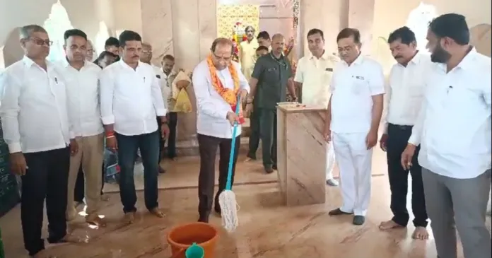 Shri Ram Temple : संगमनेर : अयोध्येमध्ये (Ayodhya) उभे राहत असलेले प्रभू श्रीरामांचे मंदिर (Shri Ram Temple) हिंदू अस्मितेचा स्त्रोत बनणार आहे. या एैतिहासिक क्षणाचा आनंद व्दिगुणीत करण्यासाठी गावोगावी आनंदोत्सव साजरा करावा, असे आवाहन महसूलमंत्री राधाकृष्ण विखे पाटील (Radhakrishna Vikhe Patil) यांनी केले. पंतप्रधान नरेंद्र मोदी (Narendra Modi) यांनी अयोध्येमधील श्रीराम मंदिराच्या लोकार्पण सोहळ्याच्या निमित्ताने मंदिर स्वच्छतेच्या केलेल्या आवाहनाला प्रतिसाद म्हणून, मंत्री विखे पाटील यांनी कार्यकर्त्यांसह संगमनेर बसस्थानकाजवळील दत्त मंदिरात स्वच्छता अभियान राबविले. स्वच्छता कामगारांशीही त्यांनी संवाद साधून पदाधिकारी, कार्यकर्ते आणि नागरिकांना मार्गदर्शन केले. ज्येष्ठ कार्यकर्ते आणि कारसेवेत सहभागी झालेले उत्तमराव कर्पे यांचा मंत्री विखे पाटील यांच्या हस्ते विशेष सत्कार करण्यात आला. या प्रसंगी महायुतीतील घटक पक्षांचे सर्व पदाधिकारी उपस्थित होते.