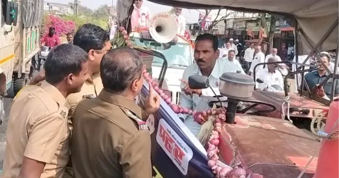 दरम्यान, श्रीरामपूर बाजार समिती समोर रॅली बॅरिकेट लावून अडविण्यात आली. त्यामुळे शेतकरी संघटनेचे राज्य उपाध्यक्ष अॅड. अजित काळे, जिल्हाध्यक्ष अनिल औताडे, संपर्कप्रमुख शिवाजी जवरे, तालुकाध्यक्ष युवराज जगताप व प्रहारचे जिल्हाध्यक्ष अभिजीत पोटे यांची पोलीस निरीक्षक नितीन देशमुख यांच्याबरोबर बाचाबाची झाली. पोलिसांनी आंदोलकांवर गुन्हे दाखल करण्यात येतील, अशी भाषा वापरल्याचा आरोप शेतकरी संघटनेच्या वतीने करण्यात आला. शेतकरी आंदोलकांनी फक्त २० ट्रॅक्टर शहरात न्यावेत, अशी विनंती केली. परंतु, आंदोलकांनी सर्व १०० हून अधिक ट्रॅक्टर शहरात नेणारच अशी भूमिका घेतली. त्यानंतर पोलिसांनी समंजस्याची भूमिका घेतल्याने आंदोलकांनी पुढे वाटचाल केली.