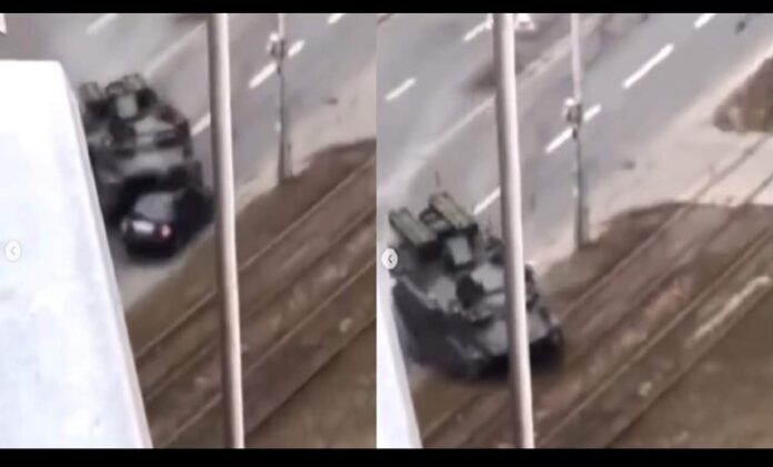 Russia Ukraine Crisis : रशियानं (Russia) यूक्रेनविरोधात (Ukraine) युद्ध पुकारलं आहे. रशियानं यूक्रेनच्या महत्त्वाच्या शहरात हल्ले केले आहेत. यूक्रेनच्या राजधानी कीवसह (Kyiv) खारकीव या प्रमुख शहरांवर रशियाकडून हल्ले करण्यात आलेले आहेत. रशियानं सुरुवातीला आम्ही नागरी वस्ती अरणाऱ्या ठिकाणी हल्ले करत नसल्याचं जाहीर केलं होतं. मात्र, प्रत्यक्षात नागरी वस्ती असणाऱ्या ठिकाणी हल्ले सुरु ठेवल्याचं दिसून येत आहेत. रशियाचं सैन्य यूक्रेनच्या विविध शहरांमध्ये रणगाडे, टँक, ट्रकसह फिरताना दिसून येत आहेत. रशियन सैन्य आणि यूक्रेनचे सामान्य नागरिक यांच्यात संघर्ष होत असताना दिसत आहे. यूक्रेनचे नागरिक रशियन सैन्याला पकडत असताना देखील दिसून येत आहे. रशियन सैन्य आणि यूक्रेन नागरिक यांच्यातील संघर्षाचा एक व्हिडीओ समोर आला आहे. या व्हिडीओत रशियन सैन्याचा टँक रस्त्यावरुन फिरत आहेत. यापैकी एका टँकनं एका कारला चिरडलं असल्याचं समोर आलं आहे. त्या कारमध्ये एक व्यक्ती होता.