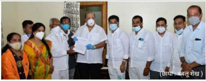 सकल मराठा समाज अहमदनगरच्या वतीने केंद्र व राज्य सरकारने विद्याथ्यांचे नुकसान होऊ नये तसेच विद्यार्थ्यांना नोकरीत अडचण येऊ नये यासाठी लवकरात लवकर मराठा समाजाच्या आरक्षणासंदर्भात निर्णय घ्यावा यासह विविध मागण्यांचे निवेदन पालकमंत्री हसन मुश्रीफ यांना देताना आमदार संग्राम जगताप, गोरख दळवी, चंद्रकांत गाडे, अॅड. शिवजीत डोके, चंद्रशेखर घुले, अभिजित खोसे, रेखा जरे, बाळासाहेब पवार, दीपक लांडगे, उबेद शेख, प्रसाद डोके आदी. (छाया:बबलू शेख)