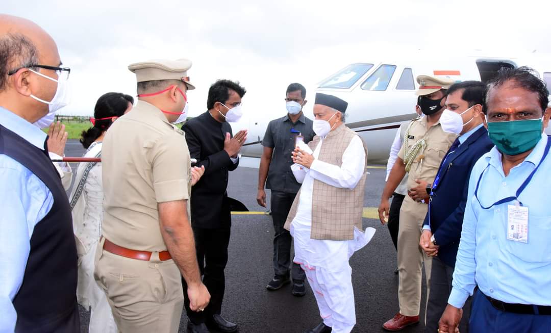 राज्यपाल भगतसिंग कोश्यारी यांचे कोल्हापूर विमानतळावर स्वागत