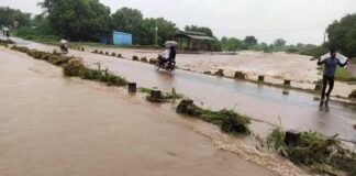 जोरदार पावसामुळं शेवगाव गेवराई राज्य मार्ग पाण्याखाली वाहतूक ठप्प प्रवाशी अडकले